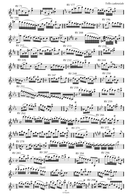 La integralidad de las cadencias, variaciones y movimientos adornados vinculados a Vivaldi está publicada en este cuaderno.